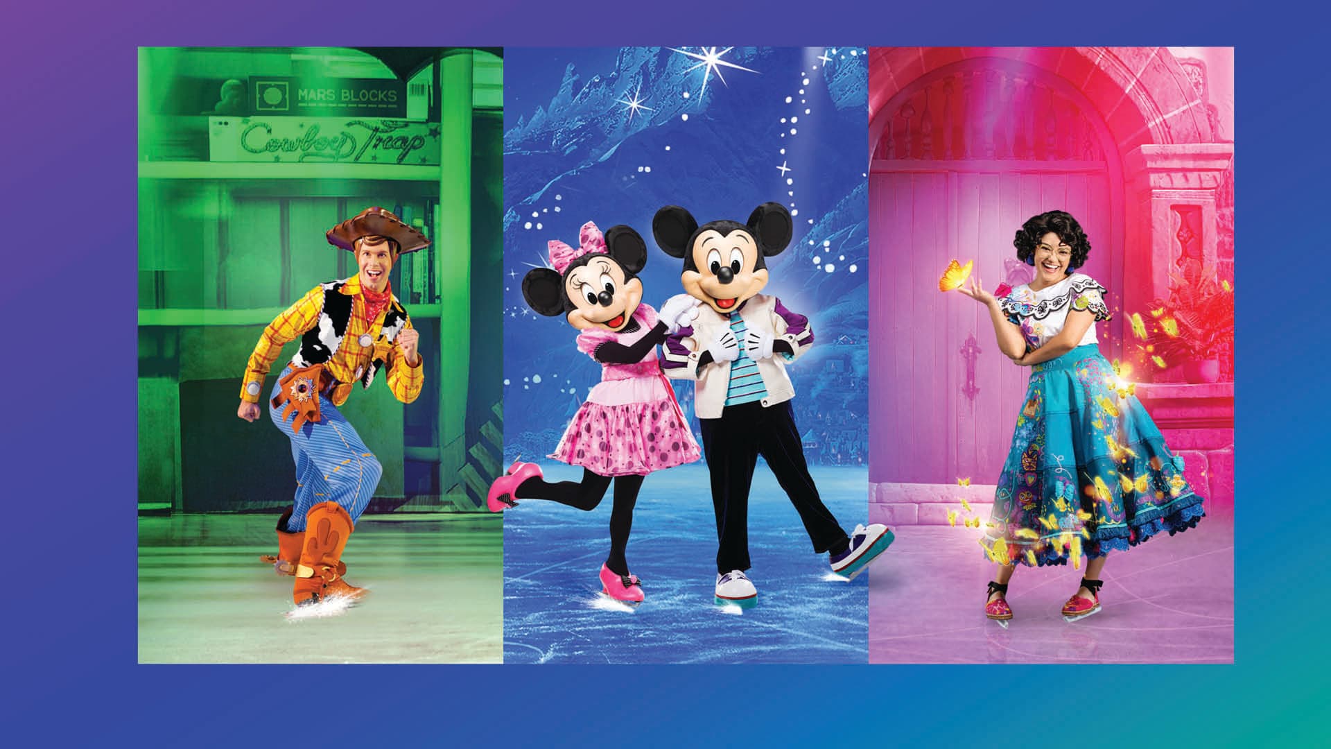 Mickey et ses amis adorent visiter la Lotto Arena. Et cette fois, il est heureux de nous présenter Mirabel et tous les héros d'Encanto lors de Disney On Ice : Mickey & amis.